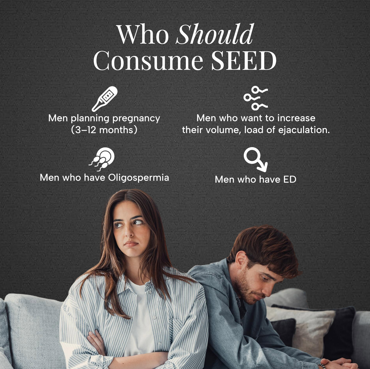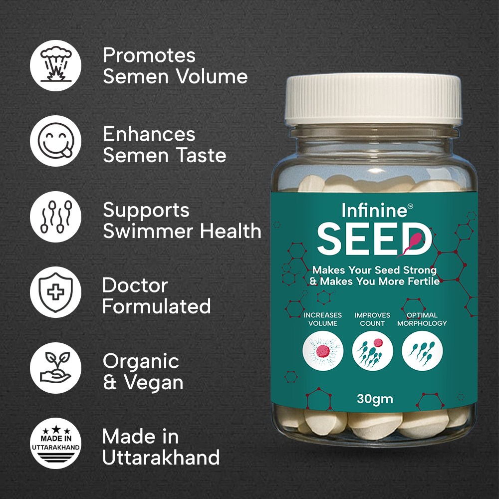 Infinine Seed: Enriched with 40mg Zinc & 12 potent herbs, it enhances fertility, sperm quality & volume, while supporting reproductive health and confidence.