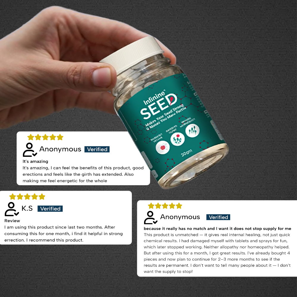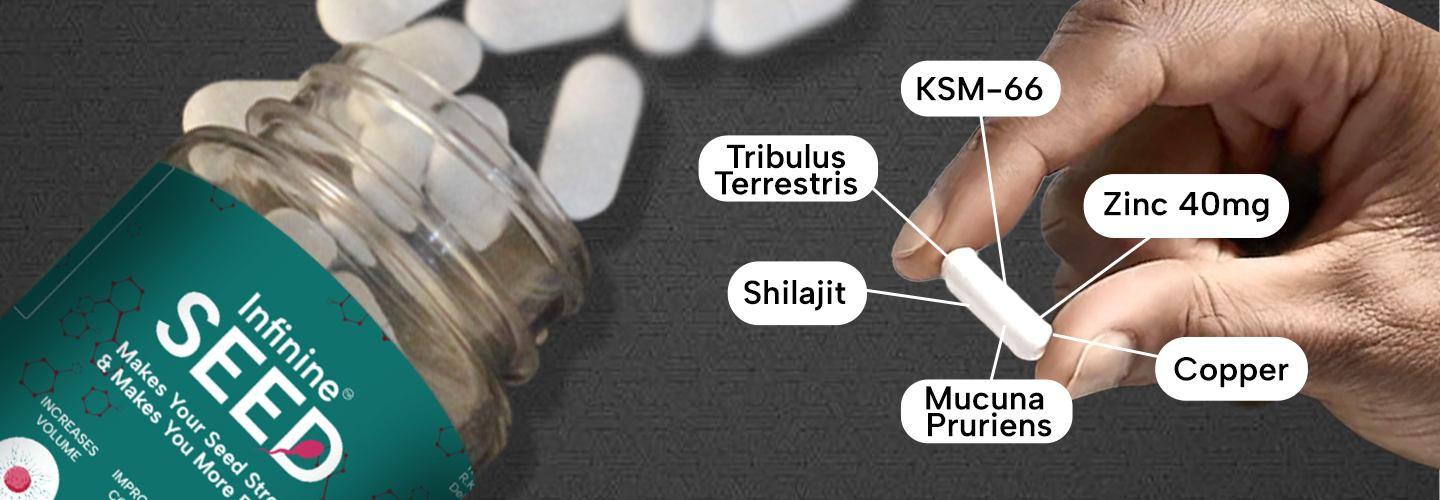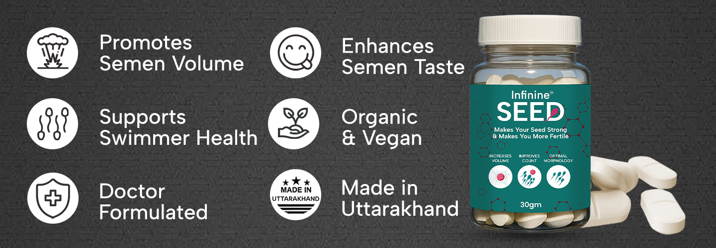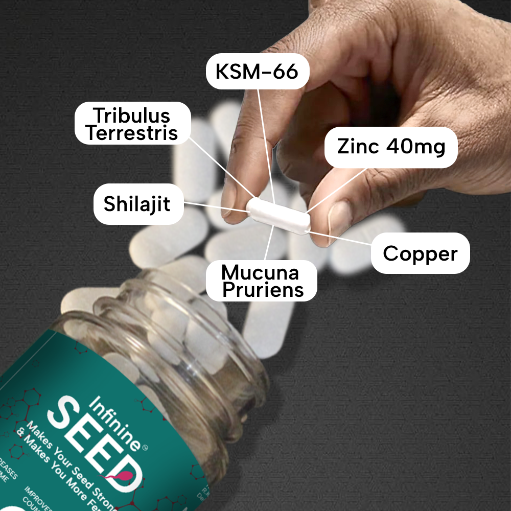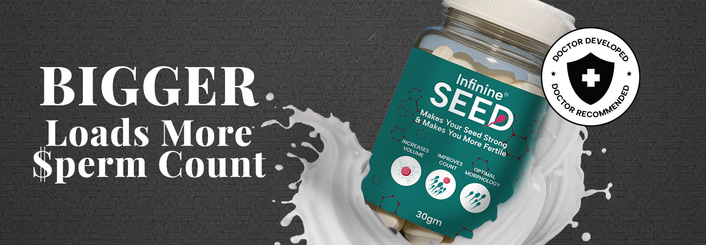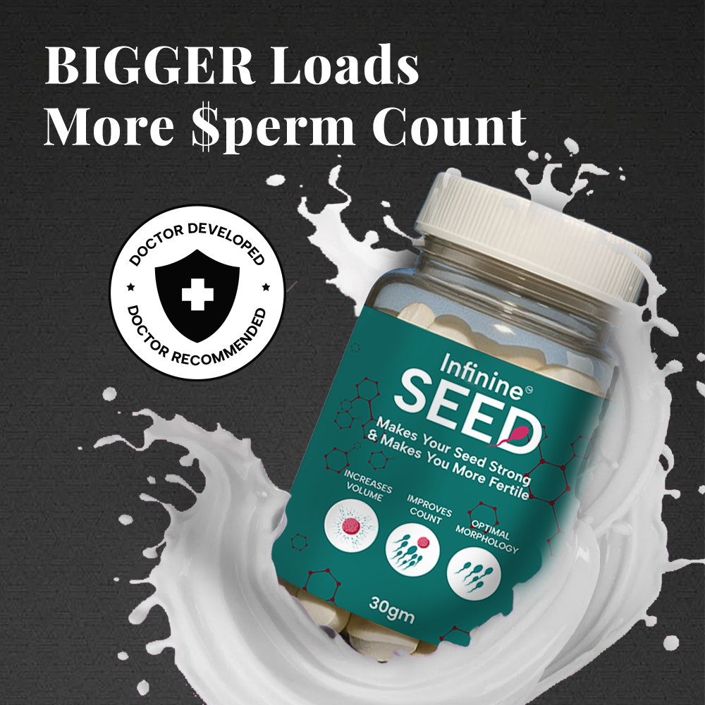 INFININE SEED is for men who are planning a child, or want to double their $perm volume & improve their seed quality. It helps in Oligosp*rmia, ED and increases the $perm Volume, Each dose has 40mg of Zinc(the only proven mineral to increase testosterone) along with 12 other potent extracts